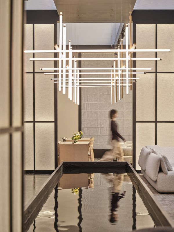 东方待客之道,讲究“以礼为骨,以和为魂”。HC28以此为灵感,在CIFF广州上重构“全球设计师会客厅”——以全景设计思维打破传统家居的物理边界,将空间转化为承载东方哲思的精神场域。品牌以流动的平面布局消弭定制家具与活动家具的割裂感,通过虚实相生的立面构建,赋予空间呼吸感与包容性,这不仅是对人居功能的革新,更是对东方生活方式与精神内核的当代转译。