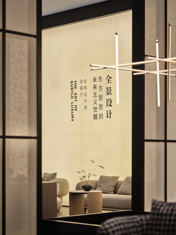 步入展厅内部,四个主题会客厅分别以“共生”“对话”“静观”“未来”为关键词展开叙事。通过差异化的材质、光影与动线设计,诠释东方美学的多元层次,既彰显国际视野,又暗藏东方气韵。