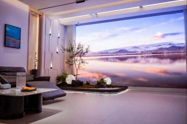 在“空间主题体验区”,灯光、音乐、新风与屏幕联动,一键切换“南法花海”“冰岛峡湾”或“围炉小聚”场景。篝火的暖光、薰衣草的香氛模拟、冰川画面的冷色调……技术隐于幕后,感官体验跃至台前。在华为鸿蒙智家的协助下,设计师可以让空间设计突破物理限制,同一个的空间也能呈现出不同的情绪。而这种“空间瞬移”的能力,就源自华为鸿蒙智家的声光律动空间级算法:声光同频时延小于100毫秒,实现完全同步的声光律动享受。更重要的事,这些精密参数都不需要设计师手动配置,而是沉淀为鸿蒙系统的“空间主题库”。用户下载主题时,同步获取的不仅是设备联动方案,更是一套完整的空间生理学参数——这让“家的度假感”首次有了量化标准。