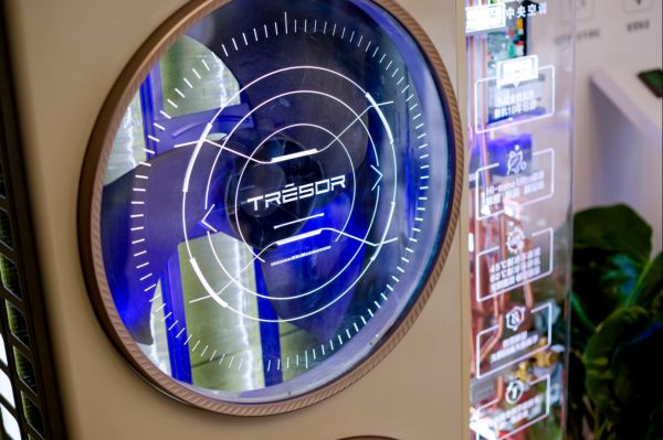 现场璀璨中央空调以透明面板展现其内部核心部件,其中包括日系压缩机和冷媒散热部件、四通阀等,均为一线品牌并以精工标准打造,可见璀璨中央空调对其品质的严格把控。不仅如此,还以可视化形式展现其最新技术原理,如Hi-nano Ultra健康模块的净化过程,辅助消费者深入了解。
