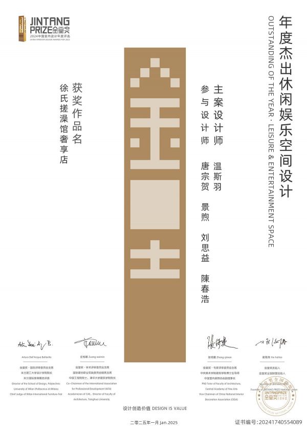 迈格空间设计总监温斯羽表示:“非常荣幸获得金堂奖的认可。在消费升级背景下,如何通过空间设计赋予其新生命力,是本次项目的核心命题。我们希望通过《徐氏搓澡馆奢享店》传递一种理念——设计不仅是美学表达,更是连接过去与未来的桥梁。未来,迈格团队将继续探索本土文化与国际视野的融合,助力更多传统行业实现品牌升级。”