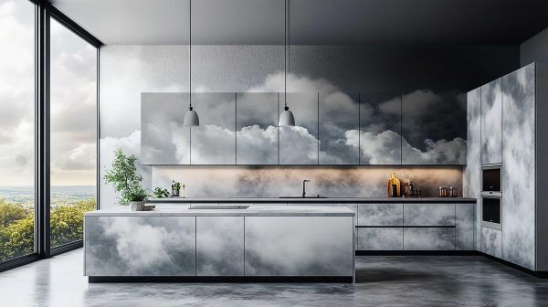 “云中漫步”的诞生是一场精密协作的缩影。上海云图创意设计机构以吴伟老师领衔的设计团队,将“飘逸、浪漫、梦幻”的灵感注入云中厨房和云上会客厅空间,打破传统烹饪场景的桎梏,让每一处细节都成为气氛美学的载体——从南洋装饰纸的肌理与色彩碰撞,到空间动线与功能的诗意融合,理想厨房和会客厅的轮廓跃然纸上。而美约家居则以全链路服务体系,将这份天马行空的创意转化为触手可及的真实。工厂内,数字化精控设备以小于0.5毫米的误差切割每一块装饰板材,确保设计图中的曲线与色彩精准落地;生产线上,“柔和、融合、优美、简约”的产品基因被刻入每一道工艺细节;安装现场,历经千余项目淬炼的技师团队以毫米级精度拼接,让图纸上的光影与质感分毫不差地复现。