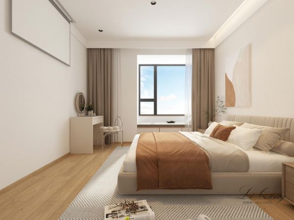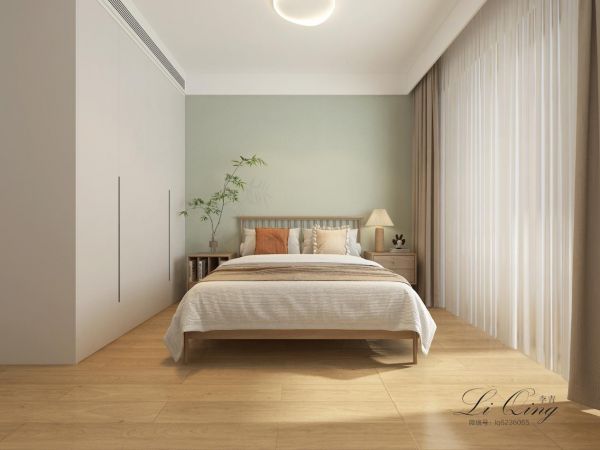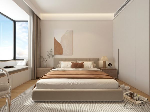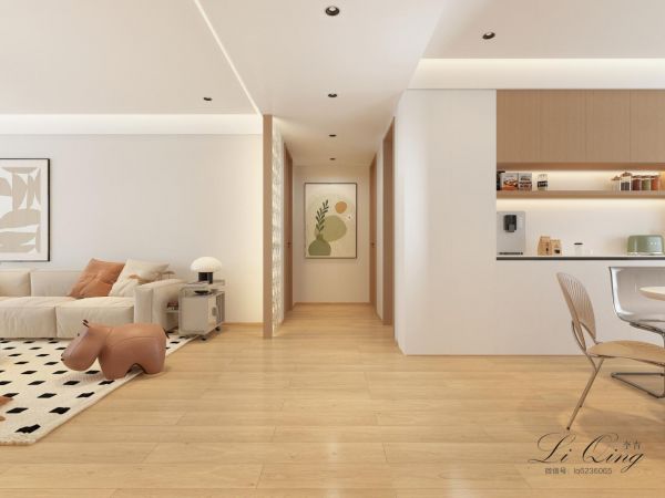 【李青】:本案位于信阳市羊山新区,以原木奶油风为设计主线,通过暖调木质肌理与治愈系奶油白的交融,为年轻新婚夫妇构筑兼具情感温度与功能理性的生活容器。设计以“爱的生长容器”为核心理念,针对业主对浪漫氛围与实用功能的双重需求,从空间叙事、系统收纳、场景体验三大维度展开深度定制。