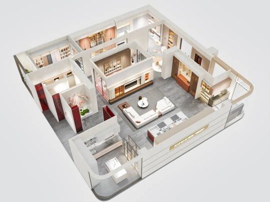 百能健康生活体验馆通过空间叙事重构家居体验,通过开放式布局与场景化设计,实现自然美学、智能科技与生活哲学的有机融合。空间规划突破传统陈列逻辑,构建“产品即场景,场景即解决方案”的价值展示体系。