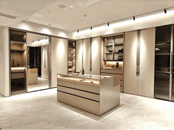 百能家居积累技术优势的同时,不断拓宽市场与品类、持续完善产品矩阵,提供全屋8大空间美学解决方案,包括橱柜、衣柜、阳台柜、卫浴柜、酒柜、书柜、门厅柜及电视柜等。产品覆盖3大风格、60多种门型、200多种花色,充分满足了消费者的个性化需求。