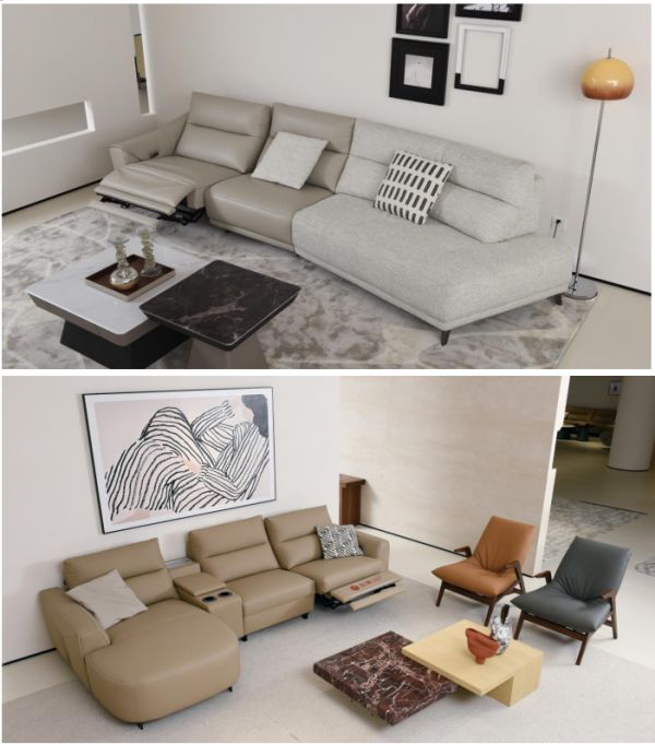 一是个性化设计打破传统桎梏,追求原创,产品个性鲜明,具显“美、精、特、新”的独特风范;二是多元化面料丰富多彩,元素变化多元,充分迎合年轻消费群体的需求,精准匹配Z世代审美需求;三是智能化创新更是令人惊艳,零靠的功能支架,多角度的线性驱动,多功能扶储位,靠包的自由调节,畅享智慧生活,一键解锁“坐躺随心”智慧体验;四是人情化展示空间自然疗愈,采用天然材质与大地色系,温暖而又质朴,营造出人与自然和谐共生氛围,让家具不仅是生活工具,更是精神栖息地。