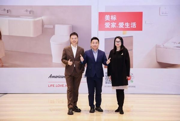 骊住水科技大中华区美标中国CEO黄波平(中)与骊住水科技大中华区创新社交领导何胜(左一)受邀出席