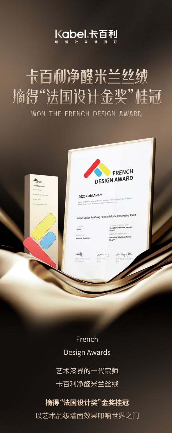 卡百利净醛米兰丝绒,摘得“法国设计金奖“桂冠