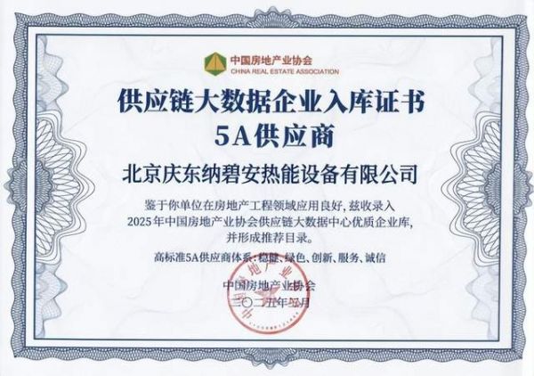 2025年3月19日,由中国房地产业协会、上海易居房地产研究院联合主办的“2025房建供应链企业综合实力TOP500测评成果发布会”于北京盛大举行。庆东纳碧安凭借长期在热能领域的技术深耕与优异表现,再次荣膺“TOP500首选品牌·壁挂炉类”荣誉称号,并同步入选中国房地产业协会供应链大数据中心“高标准5A供应商企业库”。