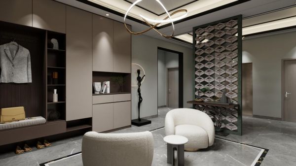 有人用设计定格风格,黄耀彬却用设计解构时间。他深耕的杨镇自建宅项目,从混凝土浇筑阶段便埋下伏笔:深灰色水刀拼花瓷砖在奢华与现代感中藏匿着三代同堂的实用主义;老人房的米色调木质家具看似静态,实则通过适老化的细节预判了十年后的生活场景——床尾电视柜的高度、无门槛的卫浴入口,皆是沉默的守护者。这种近乎执拗的细腻,让他的作品像一本未写完的家谱,每一处留白都等着生活去填词。
