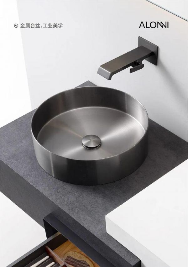 工艺极致:金属盆与岩板的碰撞,以工业美学融合自然元素,打造出极具辨识度的视觉语言
