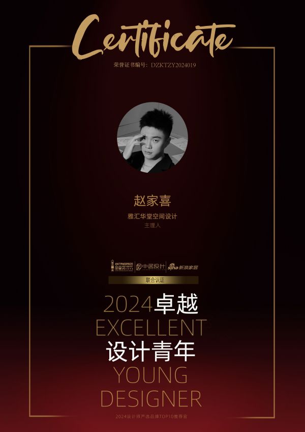 由新浪家居和金堂奖全国联盟发起的“2024卓越设计青年”,是设计业界最具传播价值的年度先锋荣誉,由新浪家居与金堂奖联名认证。本期荣膺“2024卓越设计青年”称号的是——雅汇华堂空间设计工作室设计师&主理人 赵家喜。