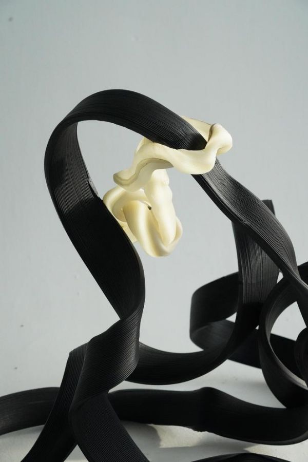 Khipu“绳做”,是赵子晗对于柔性物质所能塑造的的语言表达的创作方式,也是超出纤维编织柔性物质的雕塑实验。在对于他过去创作经验的下使用高分子型材料回火的方法,使材料软化至可编织状态,创作者的肢体语言以及潜意识的感知在有限的时间范围内让作品编织固化后成型。