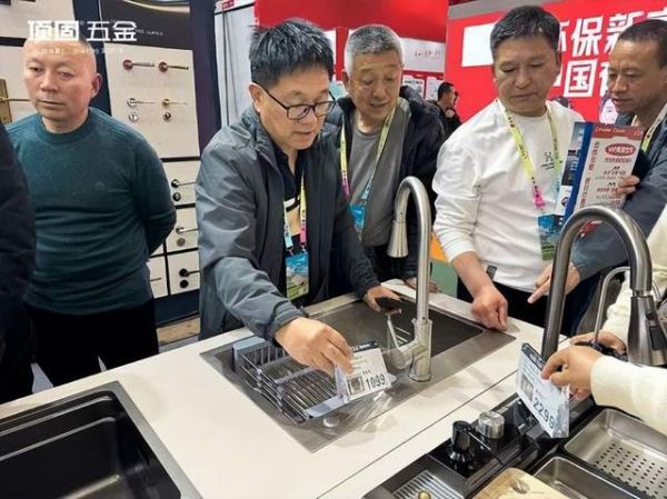 展会现场观众络绎不绝,驻足咨询、了解产品,洽谈氛围热烈非凡。其中本次展出的水槽龙头新品系列尤为亮眼,例如钢琴键飞雨多功能水槽,升级钢琴按键控水,畅享洗悦,奏响厨房新槽流,把艺术美学带进厨房。此外配套使用的304不锈钢抽拉龙头,能够灵动抽拉,一键切换多种出水模式,完美实现不同场景需求,带来畅洗无忧的厨房使用体验。