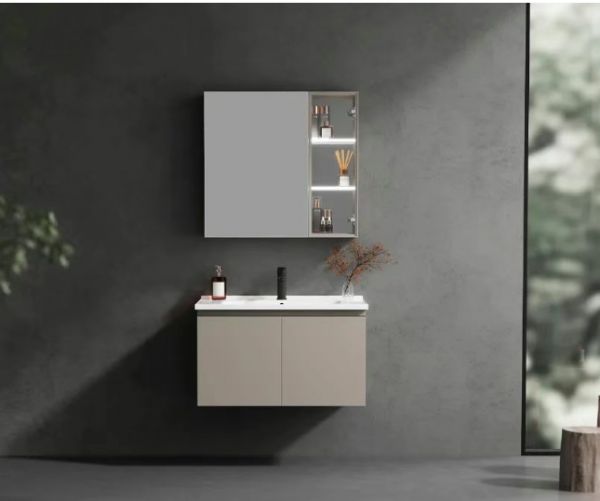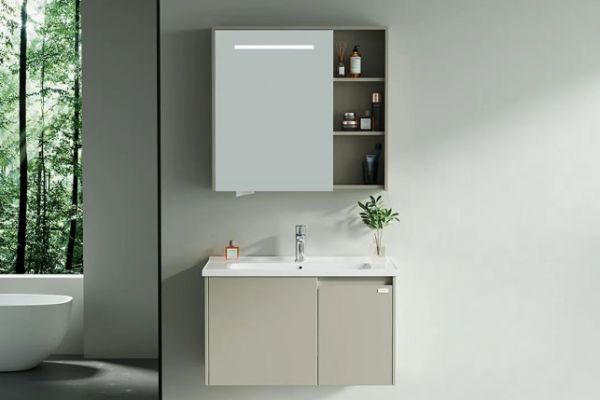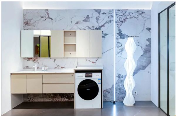 镜柜内部装配美妆架,抽纸口,适配不同规格护肤品;水槽下方隐藏抽拉式储物格,收纳量提升40%;壁挂式马桶等设计释放地面空间。