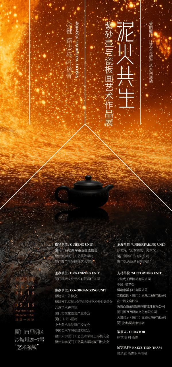 以“泥火共生”为主题的紫砂壶与瓷板画艺术作品展在厦门沙坡尾“艺术领域”美术馆正式拉开帷幕。作为“美丽厦门·让艺术走进生活”系列活动的重磅篇章,本次展览以紫砂壶与瓷板画艺术为载体,汇聚瓷板画艺术家余键、紫砂非遗传承人路志远、跨界工艺美术师叶扬青三位艺术家的匠心之作,通过泥与火的交融、传统与现代的对话,为观众呈现一场视觉与文化的盛宴。此次艺术作品展将免费为市民开放持续至五月底。