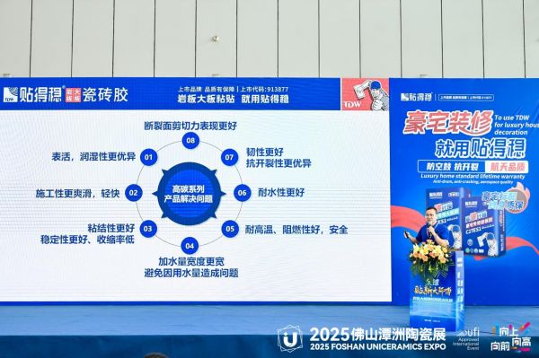 4月19日,贴得稳品牌于潭洲会展中心成功举办超级新品品鉴会,正式发布专为豪宅市场打造的高端产品——豪宅专用系列瓷砖胶,一举破解大规格岩板铺贴行业难题。活动现场座无虚席,来自各界的嘉宾与媒体朋友齐聚一堂,共同见证这一行业盛事。