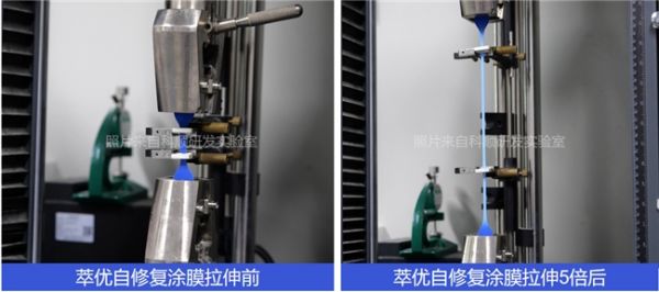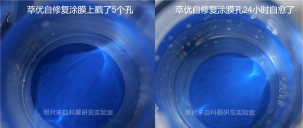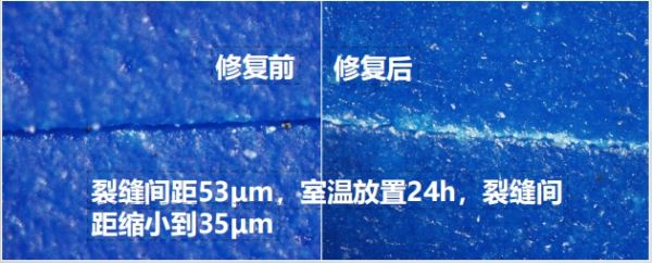 图3.百倍电镜下萃优自修复防水涂膜自愈前后展示