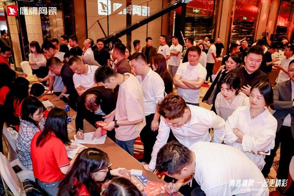 此次发布会期间,鹰牌陶瓷春季定货会也同期火热开启。定货会上,在场经销商们对众多春季产品与定货政策反响热烈,纷纷下单定货。这不仅为2025年销售业绩注入了强劲动力,更提振了经销商们的信心。