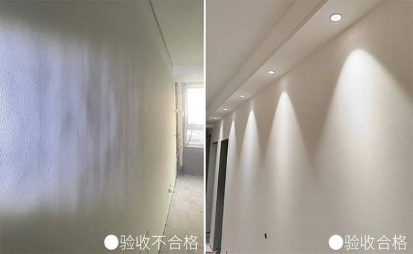 建议晚上验收,用手电筒模拟灯照斜射墙面,看墙面是否平整,无疙瘩、无水波纹,如果不平整的话要让师傅重新进行打磨,避免后期装灯翻车。
