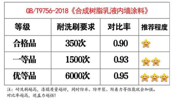 等级越高,耐刷洗次数越高,漆膜质量越好。