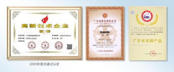 2017年企业升级为“广东光阳电器有限公司”,同年获评“国家知识产权示范企业”、“广东省科学技术奖”、“省级企业技术中心”等称号。