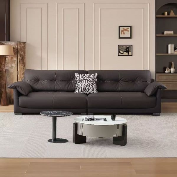 中古风不只是家居美学的呈现,更是自由随性的生活注脚。在中古风的家里,沙发绝对是C位担当,选对一款黑色真皮沙发,会让家里锦上添花。太子家居ATP38007艾图中古风真皮沙发,选用头层牛皮,表面保留天然皮纹与细微斑驳感,触感绵软中带有一丝粗粝感,完美复刻中古皮具的“使用痕迹美学”。实木框架的稳固支撑,沙发的整体结构更加稳固。经典复古造型融入极简线条,优雅黑色与实木地板融合,为家注入岁月的温度。