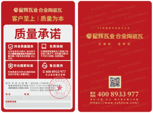 好屋面,星辉造。未来,星辉瓦业将继续坚持创新驱动发展,匠心智造好瓦,助推品牌高质量发展。欢迎更多志同道合的加盟商前来咨询了解,抢占2025年新风口,共赢财富商机!