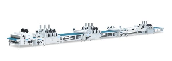 ○主要在板材表面涂布PUR胶水,复合装饰材料(卷材或片材)