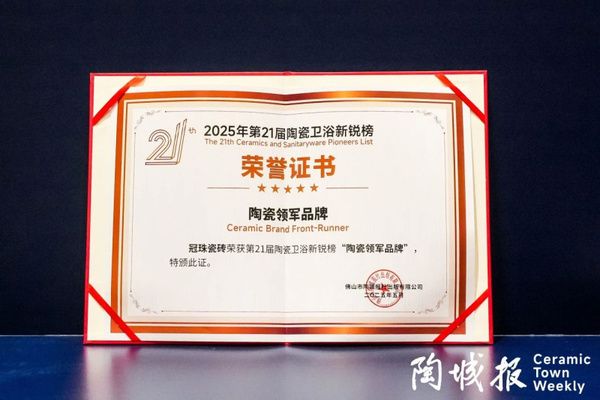 自启动报名以来,新锐榜专业评审团秉着公平、公正、公开的原则,通过多个维度最终评选出代表行业前沿的技术、产品,以及表现优秀的品牌。冠珠瓷砖连续多年获得“陶瓷领军品牌”,是行业对冠珠瓷砖品牌力、高质量发展成果的高度认可。