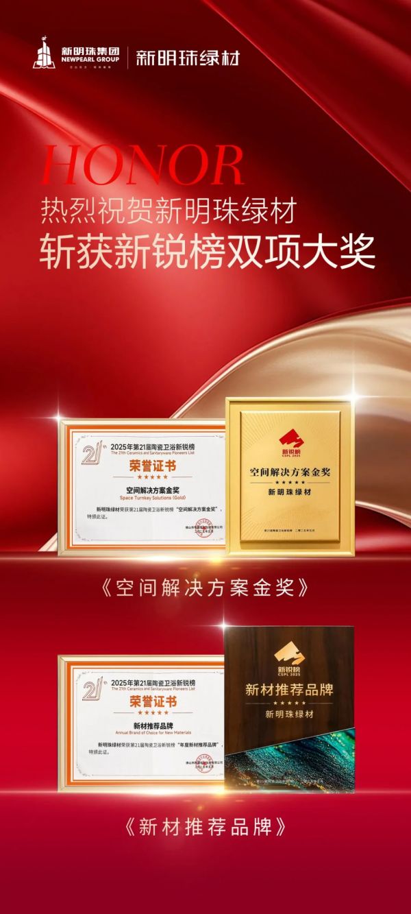 新明珠绿材坚持初心,不断以突破性的技术创新重新定义了行业绿色标准。此次双项荣誉的获得,标志着品牌在产品品质、技术突破和行业引领方面再次获得权威认可。