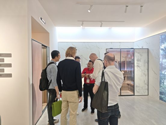 『现场互动,人气爆棚』展会首日,莱博顿卫浴展馆人气爆棚。专业的产品讲解团队穿梭其中,不仅详细介绍产品功能,还针对观众的个性化需求,现场提供家居空间搭配方案。许多客户当场表达合作意向,更有设计师团队表示,莱博顿的新品为他们的项目带来了全新灵感。