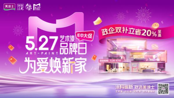 5.27为爱焕新家,美涂士第三届“527艺术漆品牌日”全国大促已在全国火热进行中。买美涂士漆,享政企双补至高立省20%,参与全国抽奖品质家电狂欢好礼拿到手软,还有艺术漆、乳胶漆、仿石漆、防水基辅材,一站涂装爆品一降再降,福利满到溢出屏幕,你还在等什么?近期有家装需求的美粉们,赶快到美涂士各大门店,抢占福利名额吧!