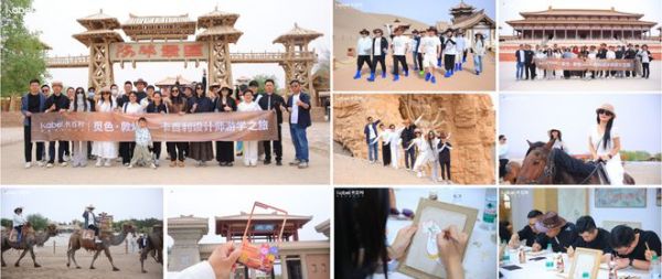 设计师们首站观赏了精彩的《又见敦煌》演艺节目,通过演员们生动的表演与独特的舞台布景,设计师们仿佛穿越回繁华的丝绸之路时代,感受千年历史的熏陶,从中汲取了深厚的文化力量。随后几天设计师们陆续参观了鸣沙山月牙泉、莫高窟、阳关遗址、丝路遗产城等自然人文景点,亲眼见证了历经千年岁月雕琢却依旧鲜活的色彩,亲身漫步过了诗行里的阳关古道,感受着大西北的苍茫之美。此外,设计师们还积极参与了壁画临摹DIY活动,在方寸画布之间勾勒出一幅幅充满敦煌韵味的作品,沉浸式地感受着敦煌美学文化的独特魅力,深入体会到传统艺术的精髓所在。设计师们不断从中汲取灵感,在传统艺术中提炼出现代设计可借鉴的元素,为设计创作注入新的活力。