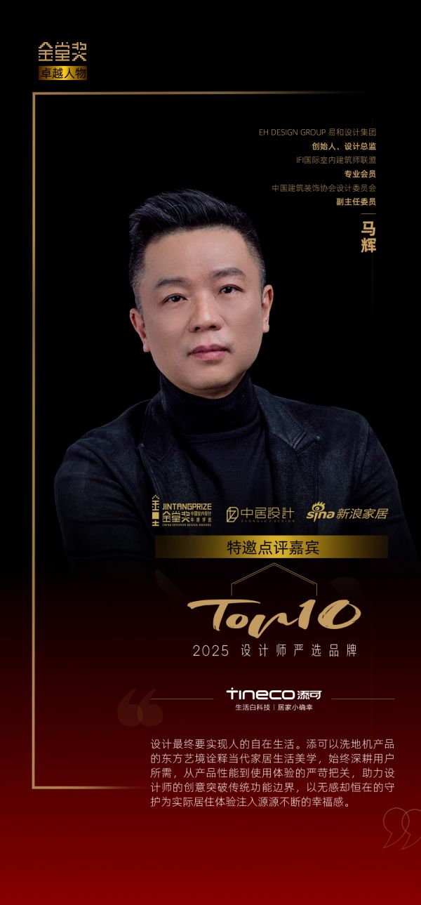 EH DESIGN GROUP 易和设计集团创始人、设计总监,IFI国际室内建筑师联盟专业会员,中国建筑装饰协会设计委员会副主任委员马辉老师对添可上榜表示祝贺,并点评道:设计最终要实现人的自在生活。添可以洗地机产品的东方艺境诠释当代家居生活美学,始终深耕用户所需,从产品性能到使用体验的严苛把关,助力设计师的创意突破传统功能边界,以无感却恒在的守护为实际居住体验注入源源不断的幸福感。