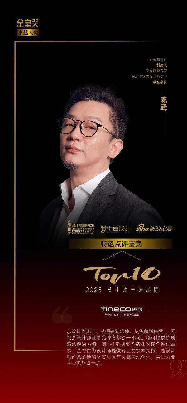 新冶组设计创始人、深圳市室内设计师协会执行会长陈武老师对添可上榜表示祝贺,并点评道:从设计到施工、从硬装到软装、从售前到售后……无论是设计师还是品牌方都缺一不可。添可提供优质清洁解决方案,其1v1定制服务精准对接个性化需求,全方位为设计师提供专业的技术支持,是设计师创意落地的坚实后盾与灵感实现伙伴,共同为业主实现梦想生活。