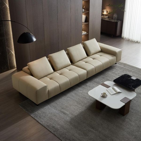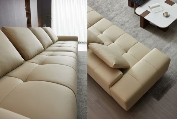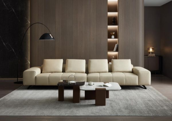 家庭影院沙发采用意式极简设计,线条利落考究,钢琴键座包以几何秩序呈现现代美学;3.62m大气对称造型,专为大宅、横厅定制,营造简奢氛围。全部位面料甄选藏品级纳帕皮,高级平纹自带奢感,触感细腻温润,皮质厚实柔软,强韧抗撕拉,透气舒爽,久用如新。