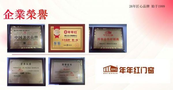 选择门窗十大品牌,本质是选择一份对家的承诺。年年红门窗以26年匠心沉淀、行业领先的技术实力、权威认证的品质保障,以及惠民担当的品牌温度,为消费者筑就安全、舒适、美观的居住空间。在追求品质生活的今天,它用一扇扇门窗,为都市人打开通向理想生活的诗意之门。