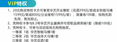 为致敬天津消费者的期待,华艺卫浴开业期间推出专属福利VIP特权卡