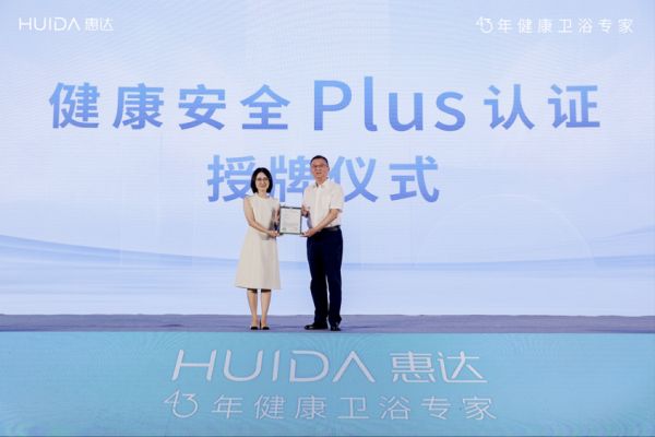 惠达卫浴总裁王佳女士代表惠达接受了由中国家用电器研究院副院长葛丰亮颁发的“健康认证PLUS”荣誉,这不仅是对惠达在健康技术领域持续投入的权威认可,更是其向亿万用户做出的品质承诺。而更具里程碑意义的是“全水路杀菌”团体标准的正式启动。