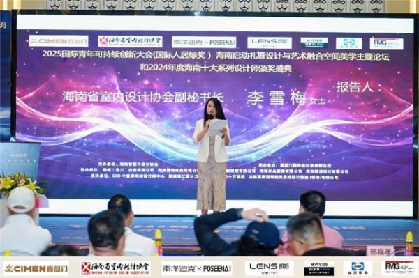 图为李雪梅女士以海南省室内设计协会副秘书长的身份出席活动并发表主题报告