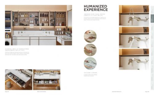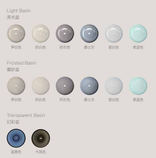 表现在2025B系列浴室柜上,光是拉手包覆,就可以提供5种颜色进行选择,包括木纹色2种(柚木色、原木纹)、金属色2种(镍拉丝、绅士灰)、纯色1种(笋白色);台盆也有莹白亮光盆、彩色亮光盆、彩色磨砂盆等多种既具时尚气质,又带有高级感的色彩。