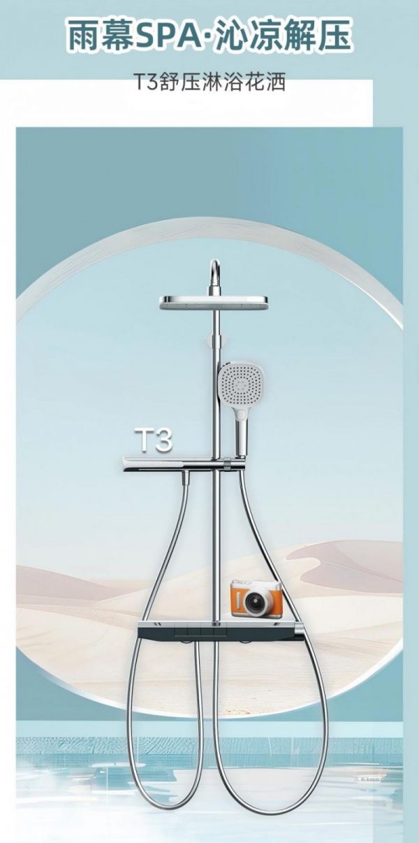 安华 T3 舒压淋浴花洒: 创新打造多功能肩喷,高度角度自由调节,精准按摩肩颈;钢琴式按键设计,操作便捷;温度数显,水温清晰了然,顶喷即关即停,畅享SPA级雨幕,瞬间洗去疲惫与燥热。