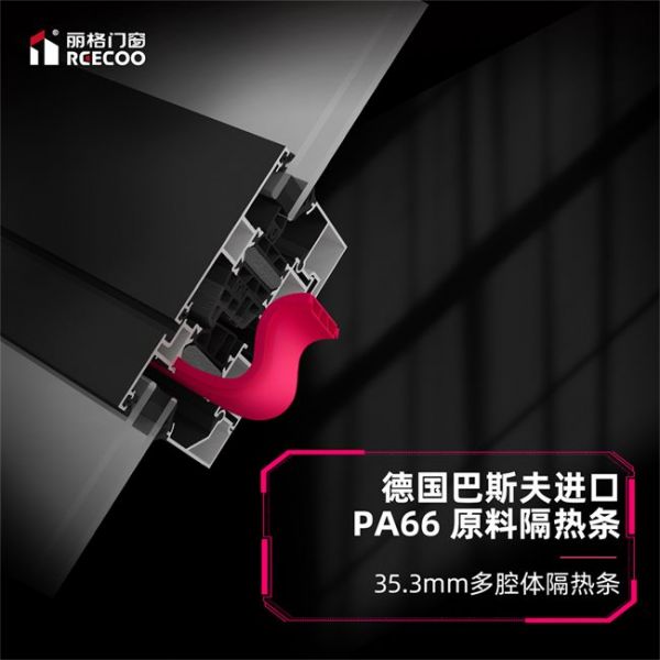 35.3mm PA66尼龙多腔体隔热条,能有效阻挡室内外热量的传递,减少能源损耗。该系列还可选配泰诺风隔热条,为用户提供更优质的保温隔热性能选择。在寒冷的冬天,它能减少室内热量的散失,降低取暖成本;在炎热的夏天,它能阻挡室外热量的进入,减轻空调的制冷负担,满足不同用户对节能环保的需求,助力家庭实现绿色低碳生活。