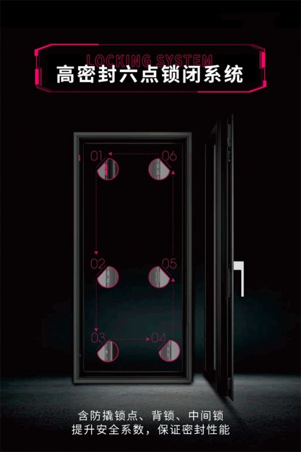 德国进口丝吉利娅隐藏式平开上悬五金,搭配高密封六点锁闭系统,包含放撬锁点、背锁、中间锁,全方位提升安全系数,保证密封性能。意大利弗朗曼FRAMMAN无底座执手,操作便捷,手感舒适。这些优质五金配件,经过严格的质量检测和长期的市场验证,确保门窗开启顺畅,使用寿命长久,为家庭安全保驾护航。