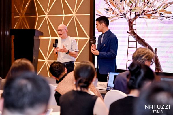 随后,中国意大利商会董事Davide Angelibusi登台致辞,他提到Natuzzi已连续两年斩获由中国意大利商会商会颁发的“金熊猫奖——意大利卓越奖”。“这一荣誉印证了Natuzzi在品牌管理、可持续发展及市场战略上的全面领先,”Angelibusi表示,“也在中国市场树立了可借鉴的意大利企业在华发展范本。”