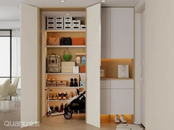 入户打造800库,即进深为800mm的步入式独立收纳空间。