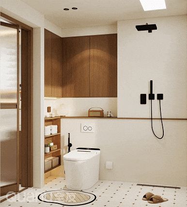 上方壁柜深度建议≤25cm,采用悬浮设计,柜内物品按使用频率分区收纳,护肤品、卫浴囤货井然有序;下方侧柜则离地30cm悬挂安装,搭配灯带,视觉上更显通透轻盈,还能有效避免地面潮气侵蚀。