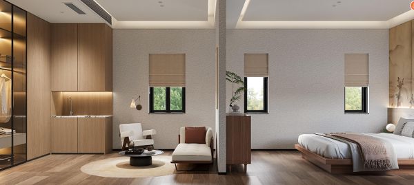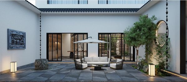 冥想庭院:借鉴四合院"四水归堂"的格局,植入紫竹林与铜佛造景。通过天井引入四季时序——夏日蝉鸣是天然梵音,冬雪覆竹即成禅意画卷。这种"可居可游"的空间,正是对传统园林"天人合一"的当代诠释。