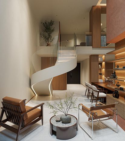 设计师 邵 亮: 近期完成的千平别墅项目令人难忘。业主既是成功商人,更是传统文化的践行者。我们以现代建筑语言重构了两个精神空间: